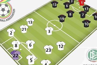 Alemania: 1 Neuer; 20 Boateng, 3 Friedrich, 17 Mertesacker, 16 Lahm; 13 Müller, 6 Khedira, 7 Schweinsteiger, 10 Podolski; 8 Özil; 19 Cacau. DT: Joachim Loew