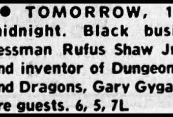La entrevista se hizo la madrugada del 8 al 9 de noviembre de 1979, que se emitió a nivel de todo EEUU y que tuvo en Gygax el cuarto y ultimo entrevistado. En aquellos años se hablaba de la extraña desaparición de Dallas Egbert III y el caso de los "Túneles de Vapor" y de pronto Gygax y TSR Ic. están muy solicitados por la prensa. Gygax estaba acostumbrado a dar entrevistas y a hablar en publico pero esta era diferente a todas las demás. En ella habla del juego, como se juega, su peculiaridades, sus inicios, etc. Fue anunciada en la prensa de la época porque en aquellos años D&D era todo un fenómeno y mucha gente alucinaba (Unos en el buen sentido y otros en el malo) con eso de los "juegos de rol".