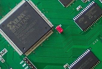 La capacidad de las CPLDs es relativamente pequeña, así que el siguiente paso era aprender sobre FPGAs. Aparte de que necesitan reconfigurarse cada vez que se encienden, realmente no hay mucha diferencia. Al igual que las CPLDs -o incluso más-, las FPGAs son bastante quisquillosas -normalmente necesitan 3 voltajes distintos-, y también hay restricciones acerca de las señales que pueden conectarse a ellas, así que necesitas leerte los manuales de cabo a rabo para estar seguro de que no vas a freír tus componentes. Otro problema es que las FPGAs suelen venir en chips con pines muy pequeños, y esto realmente puso al límite las placas que podía hacer en casa. Para mi primer experimento, compré una FPGA XC2S15 Spartan2, y la soldé en una placa casera de desarrollo, pero hoy en día las placas comerciales con FPGAs grandes son fáciles de encontrar, y relativamente asequibles.