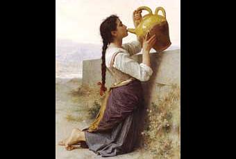 La imagen es Thirst (1886) de William Adolphe Bouguereau (1825 – 1905), podeís ver una galería de sus pinturas aquí.