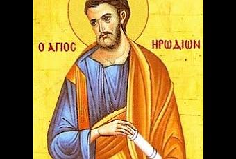 Sobre estos santos discípulos de Cristo tenemos dos fuentes. La primera es la Escritura, pues aparecen mencionados en la carta que San Pablo dirige a los romanos por medio de Santa Febes de Corinto (3 de septiembre), en la que envía saludos a la comunidad de esta ciudad, donde se hallan algunos judíos. "Saludad a Herodión, mi pariente". Y más adelante añade: "Saludad a Asíncrito, Flegon, (…) a Hermas, y los hermanos que están con ellos".Según la obra "De los 72 Discípulos", atribuida a San Hipólito (22 de agosto), estos santos fueron parte de los 72 discípulos que Cristo envía en su nombre a predicar (San Lucas 10, 1). Herodión era de la tribu de Benjamín y fue obispo de Patras, donde fue martirizado por Cristo, aunque otra tradición le hace mártir en Tesalia. En ambas fue apedreado y posteriormente tendido en el potro, donde luego de atormentarle, le decapitaron. Asíncrito llegaría a ser obispo de Hyrcania, Flegón sería el obispo de la ciudad griega de Maratón, y Hermas obispo de Filipos. Igualmente serían mártires los tres.