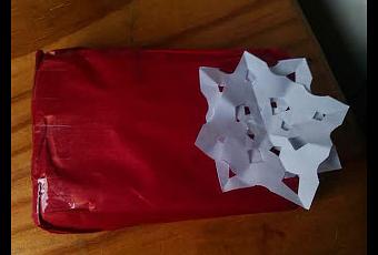 En directo está mucho mejor que en la foto. Pero como veis, la idea es bastante original. Se hacen dos copos de nieve y se superponen de manera que no encajen. Para hacer copos de nieve con papel, os dejo una página donde lo explican muy bien ^^ http://www.manualidadesinfantiles.org/como-hacer-copos-nieve-papel