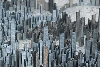 "Ephemicrópolis" es una instalación que semeja una ciudad creada con 100.000 grapas del artista Peter Root.