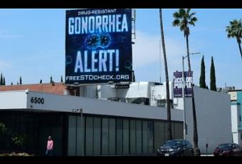 En pleno bulevar Sunset de Hollywood, una valla publicitaria tiene esta dramática advertencia: “Alerta: la gonorrea resiste a los antibióticos”.