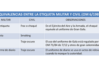 Cuando S.M. el Rey asista a un acto de uniforme, los militares presentes deben utilizar la misma uniformidad, y si vistiese civilmente, harán uso de las equivalencias mostradas en el cuadro.
