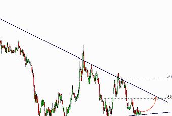 Por arriba, se fija una primera cota resistiva en los 0.461 euros y la posibilidad abierta de romper el patrón bajista en forma de línea directriz de largo plazo.