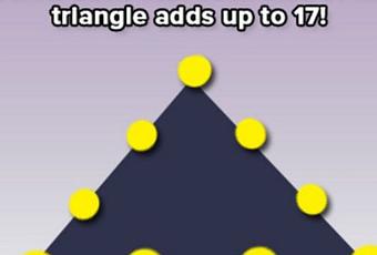 Para resolver el sudoku tienes coloque los números del 1 al 9 en los círculos amarillos de tal modo que cada lado del triángulo sume 17.