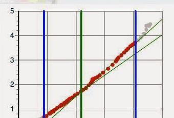 La segunda gráfica es la de Juan María Jiménez Llorens ( me he tomado la libertad, pero no pongo los valores pero adelanto que son muy buenos y acordes a los resultados deportivos). Vemos que la línea o barra azul de la derecha se desplaza más a la derecha (mayor VO2 max) y que la línea verde también está más desplazada a la derecha y muy cerca de la azul (umbral anaeróbico próximo al VO2 max.)