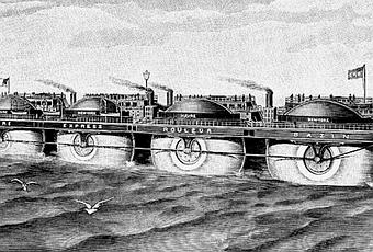 Hablemos de Ernest Bazine, un francés que soñaba con cambiar la forma en que entendemos el transporte marítimo. Su visión era simple pero audaz: un barco de pasajeros propulsado por rodillos. Este concepto se materializó en una plataforma rectangular dotada de máquinas de vapor. Pero lo que prometía ser una revolución en el mundo del transporte, quedó en el olvido cuando las pruebas demostraron que el barco no superaba los siete nudos y era un derroche de carbón.