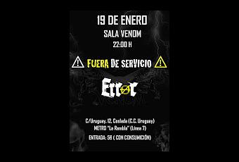 El año empieza fuerte para Error 404 y Fuera de Servicio con show en Coslada previsto para el 19/1.El rock duro y el metal están destinados a entenderse y en la sala de Coslada conocida como Venom se vivirá una noche de estos géneros,