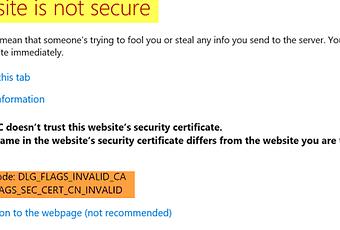 Si ve un mensaje "Este sitio no es seguro " en Edge, Internet Explorer, Chrome o Fireofx, con el código de error DLG_FLAGS_INVALID_CA, en su ordenador con Windows 10, este post arrojará algo de luz sobre él.