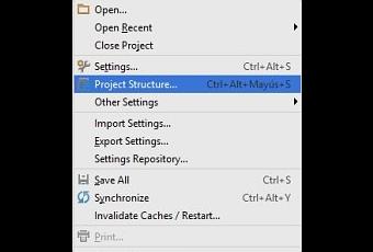 El siguiente paso es configurar nuestro proyecto para que utilice el JDK deseado, para ello iremos a File => Project Structure