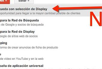 De las diferentes opciones que tienes, crea tus campañas por separado, o de búsqueda o de display. Nunca juntas. Ni los objetivos ni el alcance son comunes.
