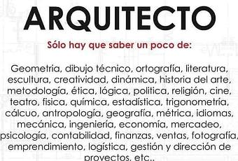 No puedo con ello. Ya estamos de nuevo los arquitectos presumiendo de la cantidad de cosas que sabemos hacer. (Sí, dice "un poco de"; menos mal). Lo primero que veo es que para presumir de todas esas sabidurías hay que tener bastante complejo de inferioridad. Ir toda la vida diciendo lo listos que somos es agotador y, sobre todo, ridículo.