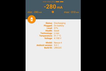 Le recomendamos no use las lecturas en esta aplicación como ciencia concreta. Sin embargo, las lecturas son lo suficientemente buenas para medir relativamente cómo varios cargadores y cables USB cargan mas o menos eficientemente el mismo dispositivo. Si la aplicación muestra 0mA todo el tiempo, utilice la opción de configuración “método de medición vieja”. Puede forzar la aplicación para usar la vieja interfaz de la medida, si el dispositivo Lollipop tiene al menos uno.