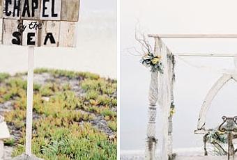 No me digáis que no son preciosas estas fotos de ceremonia de Jose Villa y están hechas en una playa en invierno!!! Una boda estilo vintage con toques modernos en las sillas, pero ante todo sencillo y elegante...