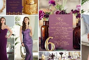 Para las bodas que se celebran en esta época del año, uno de los colores que más se utilizan es el púrpura, violeta o lila, tanto para los vestidos de dama de honor, como para las invitaciones y table cards, como para la decoración de las mesas, las flores y hasta los pasteles.