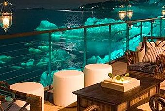Chill-out frente al mar (se ilumina el mar y las rocas, creando visión perimetral). Foto Colin Cowie