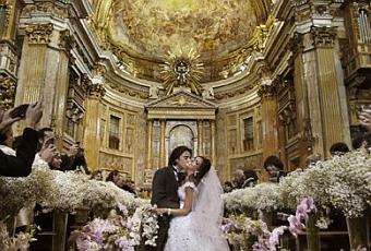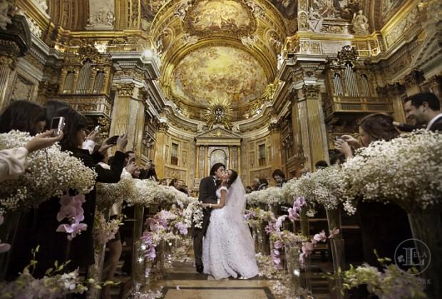 En esta foto la paniculata decora una iglesia combinada con orquídea en tono malva.