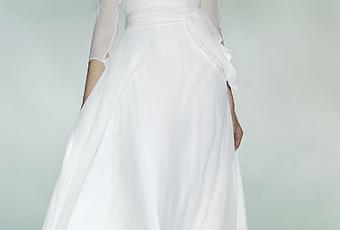 A nosotras nos encanta porque eso demuestra que el vestido con manga larga queda igual o más romántico que sin mangas y porque eso significa que la novia puede casarse fuera de la temporada de verano luciendo un vestido espectacular.