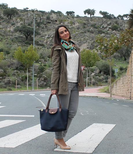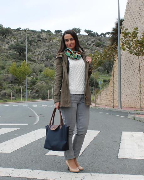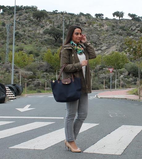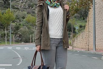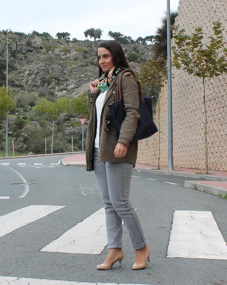 Ya veis...otra vez he tirado de mi parka verde militar para mostraros un look. Sin ir más lejos el viernes me pudisteis ver con ella en un look diferente con vestido y hoy , con pantalones. Es una prenda muy versátil y yo me la pongo un montón cuando todavía no hace mucho frío. Más adelante tendré que tirar de abrigos y de la otra parka con forro guateado que es mucho más calentita pero mientras tanto...ésta es ideal! En las fotos os muestro por primera vez mi última adquisición en Bimba y Lola, un pañuelo super vistoso que me compré a finales del verano aprovechando las rebajas. Espero que os haya gustado mi look. Nos vemos el miércoles, hasta entonces que tengáis muy buenos días :)