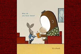 Se abre el libro y aparecen un mono y un burro compartiendo un agradable rato de lectura. Sólo hay una diferencia entre ambos: mientras el burro lee a través del ordenador, el mono se entretiene con algo más tradicional. Un libro.