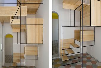 Hoy nos rendimos a una escalera que además de ser un elemento practico y con un uso obvio, tiene un marcado carácter estético. En una vivienda en Sicilia el estudio de Francesco Librizzi ha ideado una escalera muy especial, muy constructiva, con una estructura metálica y piezas de madera que funcionan como peldaños y barandillas creando un juego de geometrías muy interesante al que se suma el patrón del suelo de todas las estancias. La escalera llega a una terraza muy especial, muy italiana con unas vistas espectaculares.