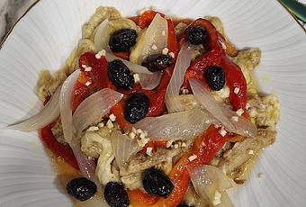 Como muchos ya sabéis la escalivada es un plato típico de Cataluña y se consume mucho por aqui, no hay masía catalana que no tenga este plato en su carta.Casi siempre en verano hago la escalivada al fuego en las brasas, no tiene igual, el sabor es espectacular, tambien es cierto que pongo mas cantidades de berenjena, pimiento rojo y cebollas, en verano cuando las cultivamos en el huerto, a veces preparo mucha cantidad y hago conserva de escalivada y voy abriendo botes cuando estamos fuera de temporada de estas verduras.Pero el resto del año tambien la preparo en el horno, cuando hago mas cantidades que hoy. Pero el caso es que hoy solo compre una berenjena y un pimiento, hermoso casi se queda pequeña la airfryer que es donde he decidirlo hacerla, justo en ese momento me dije esta receta va para el blog, ves a por el móvil que vamos a hacer el paso a paso, rapidito eso si que tampoco me sobra el tiempo, tanto es asi que últimamente cuando hago el paso a paso no hago trescientas mil fotos como antes, si no que una de cada paso y si cuatro o cinco del plato ya listo, estas fotos ni siquiera las he editado, me han parecido tal cual, bien hechas y asi gano tiempo y lo dedico a otras cosas y no me va tan mal, no creéis? se ve lo que se tiene que ver y ya esta!! jajaja.Bueno vamos con la escalivada que se prepara en nada.Ingredientes:Una berenjenaUn pimiento rojoUna cebollaUnas aceitunas negras caserasUn diente de ajoAceite de oliva virgen extra AlbiumVinagre de vino blancoSalPreparación:Lavamos la berenjena y el pimiento y lo secamos, añadimos un hilo de aceite del bueno y lo frotamos por toda la verdura con las manos.
