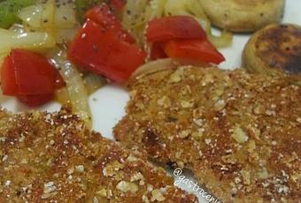 Hoy os comparto unos ricos escalopines de trigo sarraceno, con un empanado muy crujiente que además de llevar el típico pan rallado lleva también copos de trigo sarraceno.