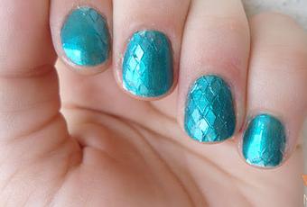 Aquí tenéis la manicura, que aunque muy sencilla, es MUY laboriosa. Abajo explico el por qué. Es así como escamitas de serpiente, por eso no están los rombos en toda la uña.