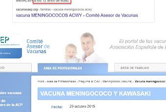 Y resulta que ese Síndrome de Kawasaki es conocido como uno de los efectos adversos de la vacuna del meningococo, como reconoce la Asociación Española de Pediatría.