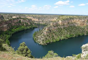 Esto no estaba en el plan inicial, pero nos encontramos el cartel del Parque Nacional de las Hoces del Duratón y mi padre recordó que le habían dicho que tenía grandes paisajes. Vimos varios buitres y aves de presa en las inmediaciones, así que decidimos dar un paseo corto por allí antes de comer.
