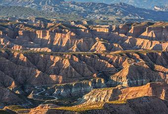 Desierto de Los Coloraos, Granada. En una porción del Planeta, situada en el norte de Granada y rodeada por algunas de las montañas más altas de la península ibérica, un antiguo río sin salida al mar y un antiguo lago alimentado por las aguas de aquel, dejaron testimonio pétreo de los singulares ecosistemas terrestres que se desarrollaron en Europa occidental durante los últimos dos millones y medio de años de historia de la Tierra, los ecosistemas de grandes mamíferos extintos del Cuaternario.
