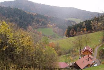 Por la mañana temprano Leela me vino a buscar para llevarme a su universidad. Allí teníamos que esperar a sus amigos con los que íbamos a recorrer la Selva Negra. Ellos tenían coche así que no fue difícil llegar allí. Tenían pensado hacer una ruta muy bonita que subía a unas colinas desde donde la vista era muy buena, pero el tiempo no acompañaba. Hacía mucho frío y amenazaba con nevar, por lo que pensaron hacer una ruta alternativa más corta y sencilla. Al poco tiempo de empezar a caminar se puso a nevar pero no fue tan intenso como para impedirnos hacer el recorrido. El paisaje otoñal era precioso, colores marrón, rojo y amarillo se mezclaban con el verde, como podéis ver en estas fotos.