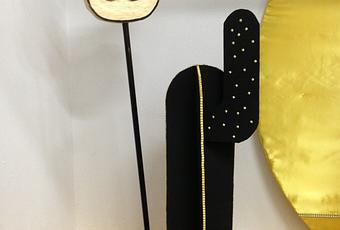Hoy os muestro otro escaparate de compañeros de la Escuela, en esta ocasión inspirado en la conocida Ruta 66 Estadounidense. Me encanta la forma en la que han realizado los cactus, cartón pintado en negro y unas tiras de pinchos doradas perfilando los bordes ;O)