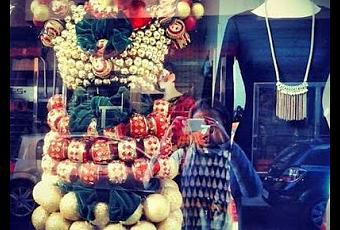 Ayer me quedé fascinada cuando de repente en una de las tiendas cercanas a casa zona de Mesa y López me encontré con esta obra de arte!!un maniquí adornado con pomposidad rozando el barroquismo.