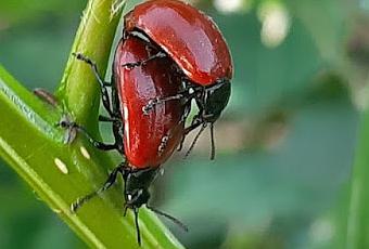 12/07/2020. Uno de mis favoritos, el escarabajo del chopo, Chrysomela populi. Es curiosa la convergencia de la forma del "caparazón" con las tortugas de tierra: hembras más planas y machos "abombados", que en las tortugas se atribuye a la adaptación para la monta.