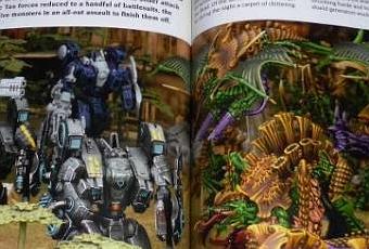 Realmente creo que ese informe de batalla es algo mas que promocionar las nuevas figuras de Tiranidos.Es demostrar que con el nuevo giro que están tomando las reglas se esta abriendo una nueva posibilidad que los de GW se mueren de ganas por aprovechar y sacar todo su jugo:Batallas de bichos grandes y solo grandes,donde en vez de cargar con maletones y mochilas llenos de figuras,se juegue con 5,6,7 o mas muy grandes que entren en un maleton y una mochila.