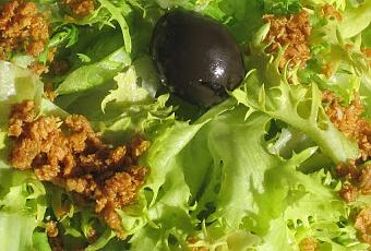 Esparcimos los ajos fritos por toda la escarola y aliñamos al gusto.Podemos mezclar la ensalada con más productos, pero yo solo la he acompañado con unas olivas, tal y como lo hizo la señora María.