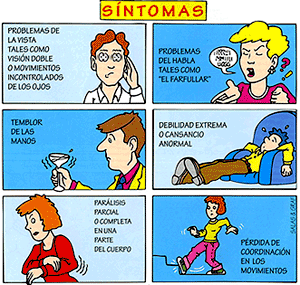 Los síntomas son difíciles de diagnosticar, por que no los hay típicos de la enfermedad, hormigueo, entumecimiento y pérdida de fuerza en las extremidades, picazón, problemas con el sentido del equilibrio....esto es una pequeña parte de lo que comienzan a sentir, si queréis saber más Aquí tenéis la información.