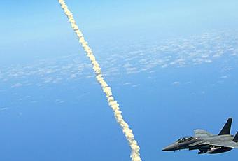 Cada vez que la NASA lanza un transbordador espacial aviones de la Fuerza Aérea de los Estados Unidos patrullan la zona por lo que pueda pasar. En este caso, esta es una foto tomada por el WSO de un F-15E durante el lanzamiento del Endeavour en la misión STS-134, de la que acaba de volver.Fuente