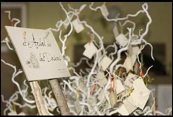 Añade a la decoración de tu boda un árbol de los deseos. Es una idea original que entusiasmará a tus invitados ya que podrán escribir sus mejores deseos a la pareja.