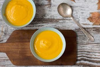 Para compensar la falta de esos dos alimentos he incorporado un poco más de calabaza y he reducido la cantidad de líquido. El resultado ha sido una crema de calabaza realmente deliciosa.