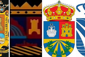 En la imagen observamos el primer escudo que tuvo Fuenlabrada recientemente, se aprecia los campos de labranza con la ciudad al fondo.