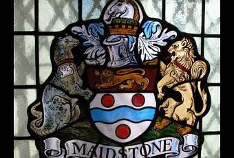 Escudo de MaidstoneQuizá la pionera fue la capital del condado de Kent (Inglaterra), Maidstone, ubicada tan sólo a unos 50 kilómetros de Londres, que desde 1949 muestra en su escudo municipal un Iguanodon como el que encontró en una de sus canteras Gideon Mantell (o lo más seguro, su señora) allá por 1822.