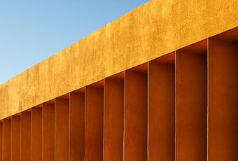 El vocabulario arquitectónico es sólido, geométrico y juega con la luz interior de contraste de color ocre. Se utilizan diferentes dispositivos de protección solar.