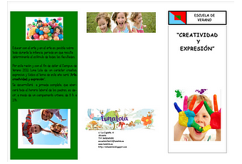 Aquí os dejamos toda la información relativa al proyecto de Escuela de Verano que se pondrá en marcha durante los meses de Julio y Agosto. Como en el caso de la Ludoteca, construiremos un Blog donde los papás puedan estar al día de todo lo que sucede en la Escuela de Verano (horarios, actividades, excursiones, talleres...), en breve publicaremos la dirección hasta entonces os proporcionamos los folletos informativos de la misma. Esperamos que os guste la temática y los contenidos de este año.