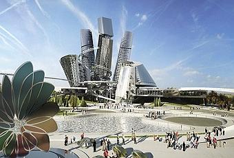 El espacio al aire libre construye el programa adicional de la exposición, donde el elemento destacado es el Pabellón Nacional de Kazajstán, situado en línea con la entrada principal. Las áreas de exhibición comercial completan la organización de una ciudad donde la generación de energía será el principal paradigma a influenciar en todos los aspectos de la vida urbana.Los cuatro pabellones temáticos Cosmos, Mundo, la Vida y la Mente actúan como mini-centrales que generan energía a través de la forma y el tratamiento de fachada de cada torre. Así anunciada, Ciudad del futuro se formula como un diseño que privilegia la generación de energía con mayor énfasis que el empleado en la creación de espacios urbanos asequibles.