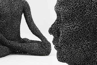 Artista coreano Seo Yeong-Deok crea imponentes esculturas figurativas con configuraciones muy unido de cadenas de bicicleta soldada y cadenas industriales de acero. Aunque impresionante en su complejidad y la habilidad aparente para crearlos, los títulos de las obras de arte, tales como la infección – La angustia, la infección – Ego, y Addict, sugieren que la superficie ondulada creado por los materiales no es una decisión arbitraria. Estas son cifras de las personas en la desesperación, salpicado con la enfermedad, las cadenas actúan como una metáfora de la condición humana.