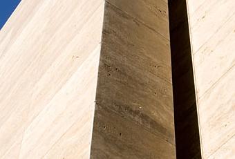 Una escultórica vivienda revestida de mármol travertino rojo es la protagonista hoy en este blog.